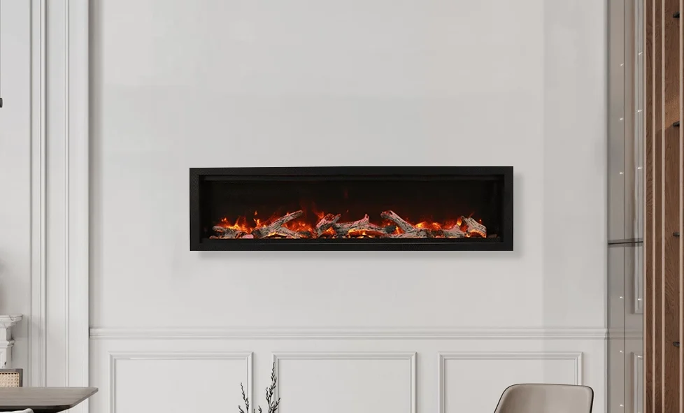 The Symmetry fireplace can be fully recessed or semi-flush mounted within a standard 2×4 wall. For semi-flush mount applications, the SYM-XS surround is required. This versatile installation allows the fireplace to be seamlessly integrated into your living space.