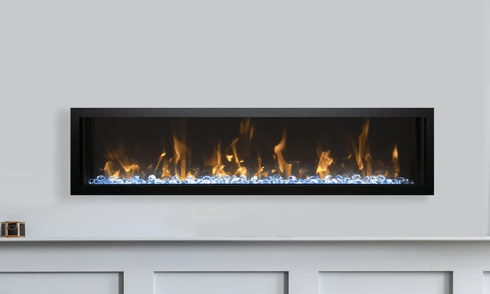 The Symmetry Xtra Slim offers adjustable flame brightness and speed, allowing you to create the perfect ambiance. The 10 color options for the ember bed lighting, along with a color rotation mode, let you further personalize the fireplace’s appearance to suit your decor.