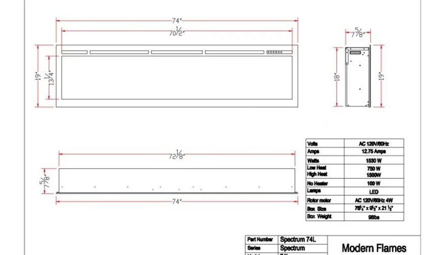 Modern Flames SLxx-B Spectrum Series Linear Built-In Electric Fireplace provides a simple, safe, and beautiful fireplace option for your home. The Spectrum Series creates a realistic flame pattern without the need for wood or gas by using high-efficiency LED technology. Three-stage lighting intensity allows you to set your fireplace to match the conditions of the room. A built-in design allows for easy incorporation into existing decor, while (12) customizable flame color options give even more visual control. An option 2-stage heater provides supplemental heat up to 450 square feet, and an easy-to-use remote control provides the finishing touch for a complete fireplace unit you’re sure to love!